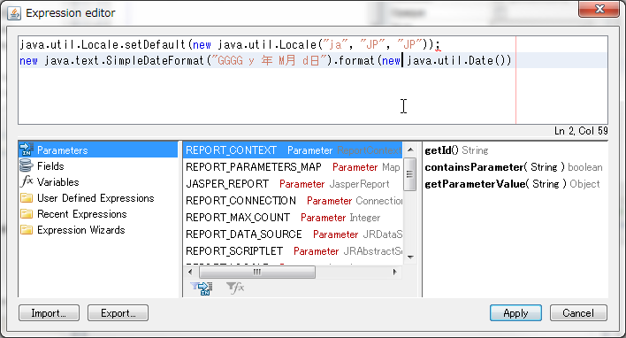 new java.text.SimpleDateFormat("GGGG y 年 M 月 d 日").format(new java.util.Date())