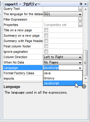 1. リポートのプロパティでExpression のLanguage を "Javascript" に設定