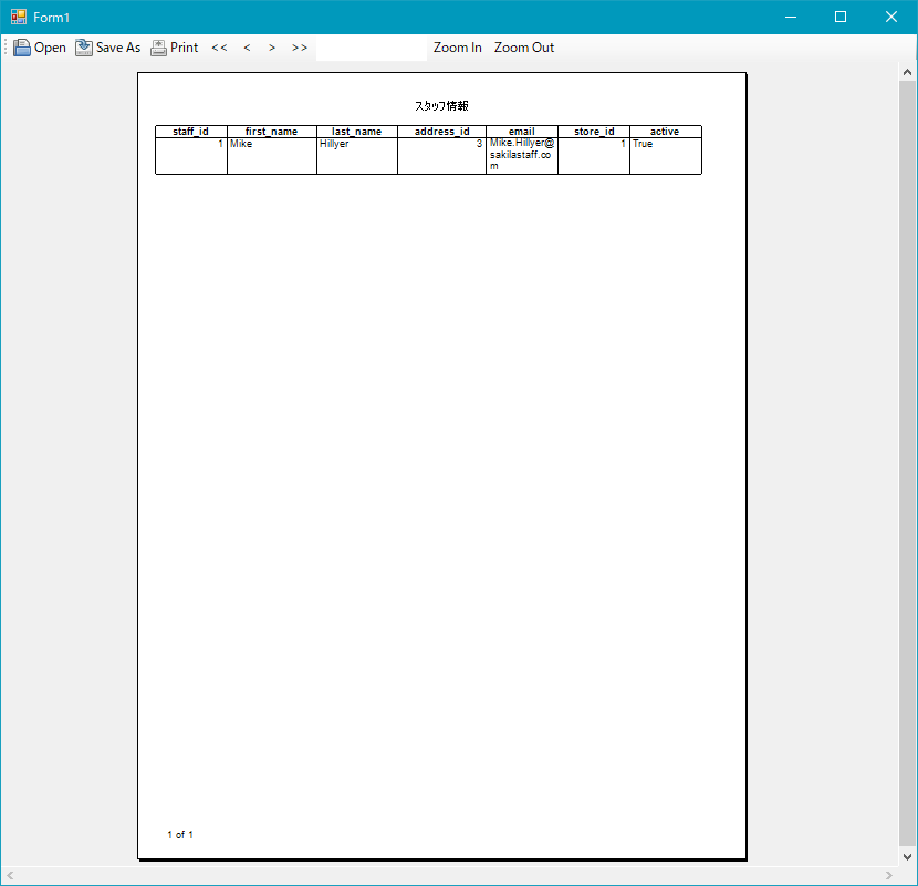 実行するとツールバー付きの印刷プレビュー画面が表示できる。| ライブラリ名 | ライセンス |